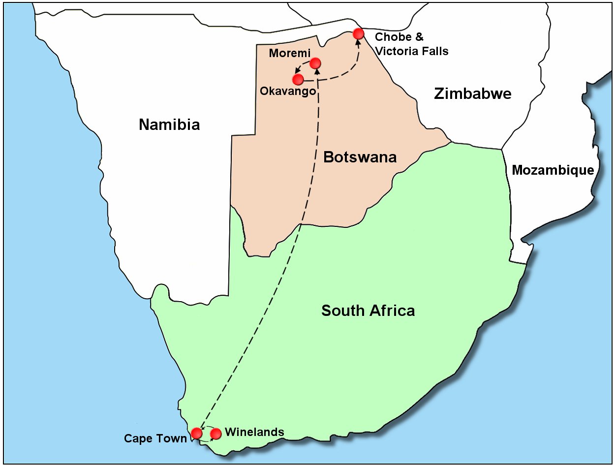 An itinerary map for Best of SOUTHERN AFRICA