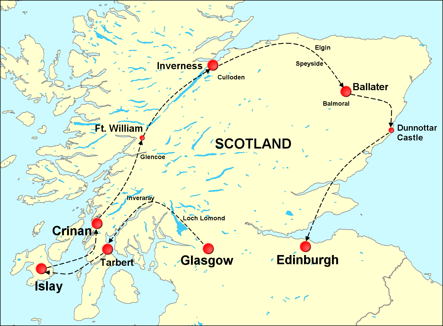 An itinerary map for Best of SCOTLAND